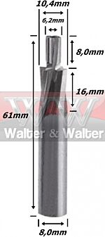 - Fresa Topo Reto 1,6mm (2c) X 6,0mm X 38mm X 1/8. (Ftr14) PREÇO SOB CONSULTA