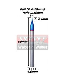 FRESA BALL (COBERTURA NANO BLUE HRC63) 0,2MM (2C) X 0,4MM X 50MM X 4,0MM. (FTR961)