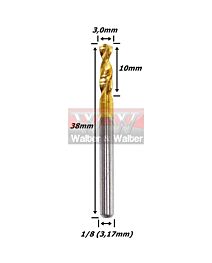 Broca Pcb Banho Titânio 3,0mm X 10mm Corte X 38mm Total X 3,17mm (1/8) Haste. (Ftr1790)
